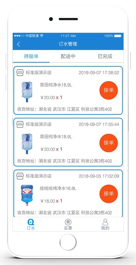 手机移动接单配送- 送水端